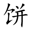 ② Vật tròn như cái bánh: 鐵餅 Đĩa sắt (dùng để ném); 豆餅 Khô đậu.