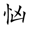 5. (Tính) Sợ hãi, không yên lòng. § Thông “hung” 兇. ◎Như: “hung cụ” 訩懼 lo sợ, bất an.
