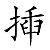 ② Nhúng vào, len vào, chen vào, xen vào, chõ vào: 你一插手事情更壞 Anh nhúng tay vào càng thêm hỏng việc; 插足不下 Chen chân không lọt.