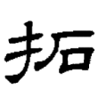6. Một âm là “tháp”. (Động) Rập lấy, lấy giấy mực in lại chữ bia khắc, mai rùa. § Cũng như “tháp” 搨. ◎Như: “thác bổn” 拓本 bản in rập.