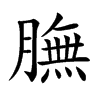 4. Một âm là “vũ”. (Tính) Nhiều, hậu. ◇Thi Kinh 詩經: “Tỏa tỏa nhân á, Tắc vô vũ sĩ” 瑣瑣姻亞, 則無膴仕 (Tiểu nhã 小雅, Tiết nam san 節南山) Những anh em bạn rể bên họ vợ nhỏ nhen (của ngài), Thì chớ trọng dụng (hậu đãi).