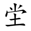 2. (Danh) Nhà, phòng dành riêng cho một việc. ◎Như: “lễ đường” 禮堂 nhà để tế lễ, “Phật đường” 佛堂 nhà thờ Phật, “khóa đường” 課堂 lớp học, “kỉ niệm đường” 紀念堂 nhà kỉ niệm.