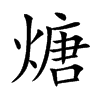 2. (Tính) Sền sệt, trạng thái giữa lỏng và đặc. ◎Như: “đường tiện” 溏便 phân lỏng, “đường tâm” 溏心 sền sệt, “đường tâm đản” 溏心蛋 trứng nấu hơi chín hồng đào.