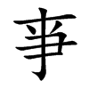 ⑤ Chuyện, việc (xảy ra, sự cố, biến cố): 出事 Xảy ra chuyện; 平安無事 Bình yên vô sự; 天下常無事則已,有事,則洛陽必先受兵 Thiên hạ thường không có biến cố (xảy ra) thì thôi, nếu có biến cố, thì Lạc Dương ắt phải chịu nạn binh lửa trước nhất (Lí Cách Phi);