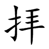 ③ (cũ) Phong, tôn làm, kết nghĩa: 拜將 (Được vua) phong làm tướng; 拜把子 Kết nghĩa anh em;