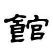 5. (Danh) Sở quan, quan thự. ◎Như: “đại sứ quán” 大使館 tòa đại sứ. Nhà Đường 唐 có “Hoằng Văn quán” 弘文館. Nhà Tống 宋 có “Chiêu Văn quán” 昭文館. Ban Hàn lâm viện nhà Thanh 清 có “Thứ Thường quán” 庶常館. Vì thế nên chức quan trong viện gọi là “lưu quán” 留館, bổ ra các bộ hay phủ huyện gọi là “tản quán” 散館.