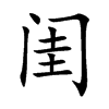 4. (Tính) Thuộc về phụ nữ. ◎Như: “khuê phòng” 閨房 phòng the, phòng của phụ nữ ở, “khuê hữu” 閨友 bạn bè của đàn bà con gái. ◇Hồng Lâu Mộng 紅樓夢: “Tắc tri tác giả bổn ý nguyên vi kí thuật đương nhật khuê hữu khuê tình, tịnh phi oán thế mạ thì chi thư hĩ” 則知作者本意原為記述當日閨友閨情, 並非怨世罵時之書矣 (Đệ nhất hồi) Hẳn biết bổn ý của tác giả vốn là ghi chép những chuyện bạn bè, tình tứ trong khuê các buổi đó, chứ quyết không phải là sách oán ghét chửi bới thời thế vậy.