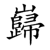 2. (Phó) Sừng sững cao lớn đứng một mình. ◎Như: “khuy nhiên độc tồn” 巋然獨存 sừng sững trơ trọi một mình.