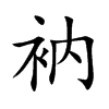 3. (Động) Nhận, chấp nhận. ◎Như: “tiếu nạp” 笑納 vui lòng nhận cho, “tiếp nạp” 接納 tiếp nhận. ◇Tả truyện 左傳: “Chư hầu thùy nạp ngã?” 諸侯誰納我 (Văn công thập lục niên 文公十六年) Chư hầu ai thu nhận ta?