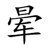 5. (Danh) Vầng ánh sáng lù mù. ◇Hàn Dũ 韓愈: “Mộng giác đăng sanh vựng, Tiêu tàn vũ tống lương” 夢覺燈生暈, 宵殘雨送涼 (Túc long cung than 宿龍宮灘) Mộng tỉnh đèn lù mù, Đềm tàn mưa tiễn lạnh.
